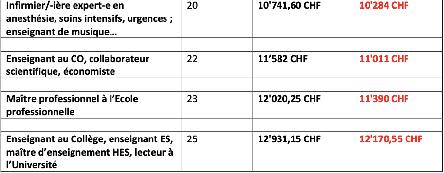 Pour les salarié·es de l’Etat, c’est même la triple peine : non seulement leur salaire est touché, mais comme le reste de la population, d’une part ils et elles vont payer plus (un exemple parmi d’autres : la facture pour une personne en EMS va passer de 13 francs à 23 francs par jour), et d’autre part ils et elles vont voir diminuer les prestations de l’Etat. Et on n’évoque même pas l’argent épargné par l’Etat en abandonnant des projets qui doivent baisser les émissions de gaz à effet de serre ou protéger la biodiversité.